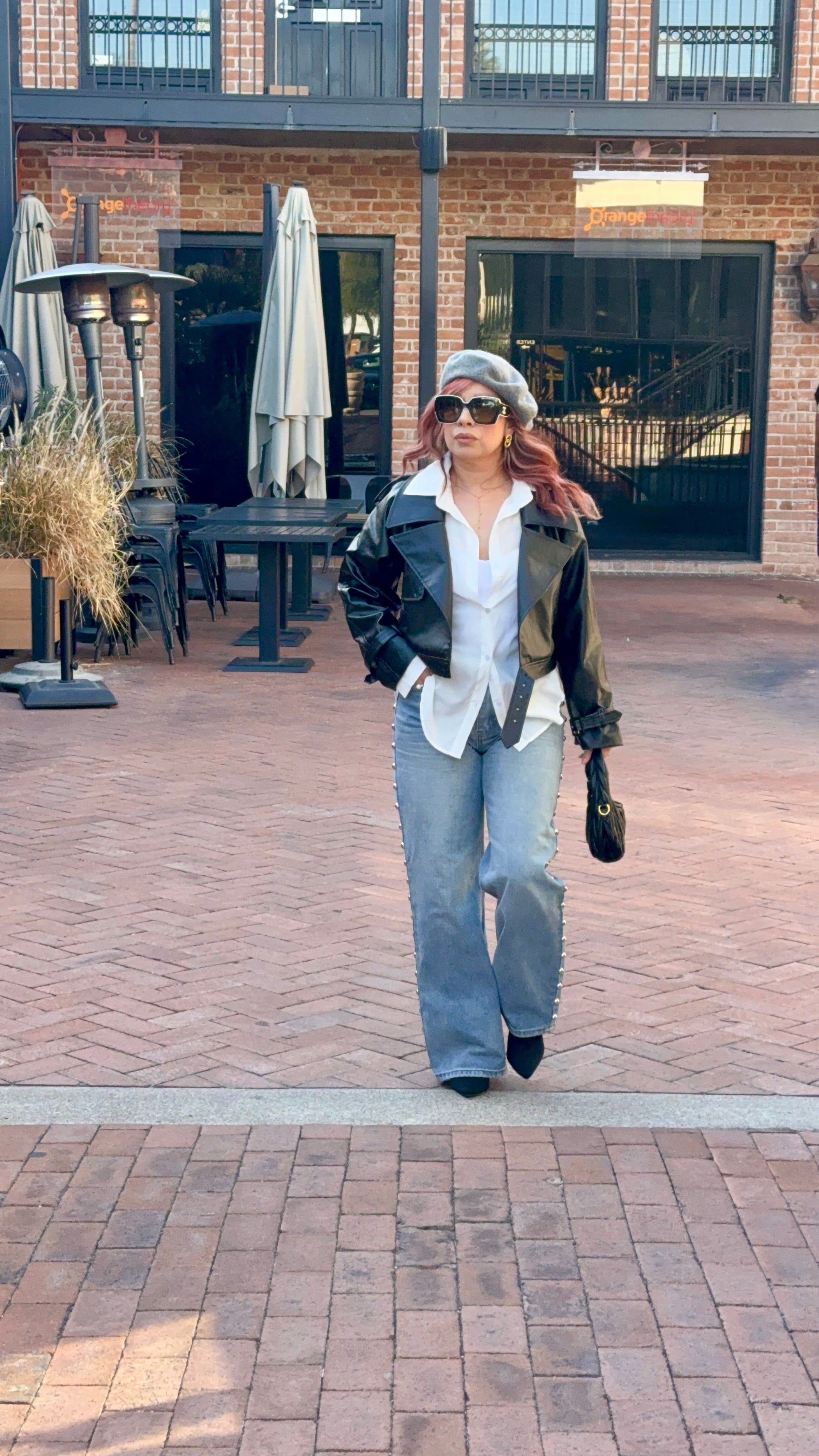 Stand out from the rest in this black faux leather cropped look, giving an elevated take on streetwear Layer up your fit with this black basic faux leather pocket detail moto jacket. Crafted from sleek black faux leather, features a belt button accent, pair this with a basic tee and blue jeans for the ultimate seasonal look, a long dress, or a skirt & knee-high boots or booties. Your wardrobe needs a staple versatile jacket; styling makes it perfect for both an evening out or a cozy day spent shopping. Add a statement bag to finish the look.