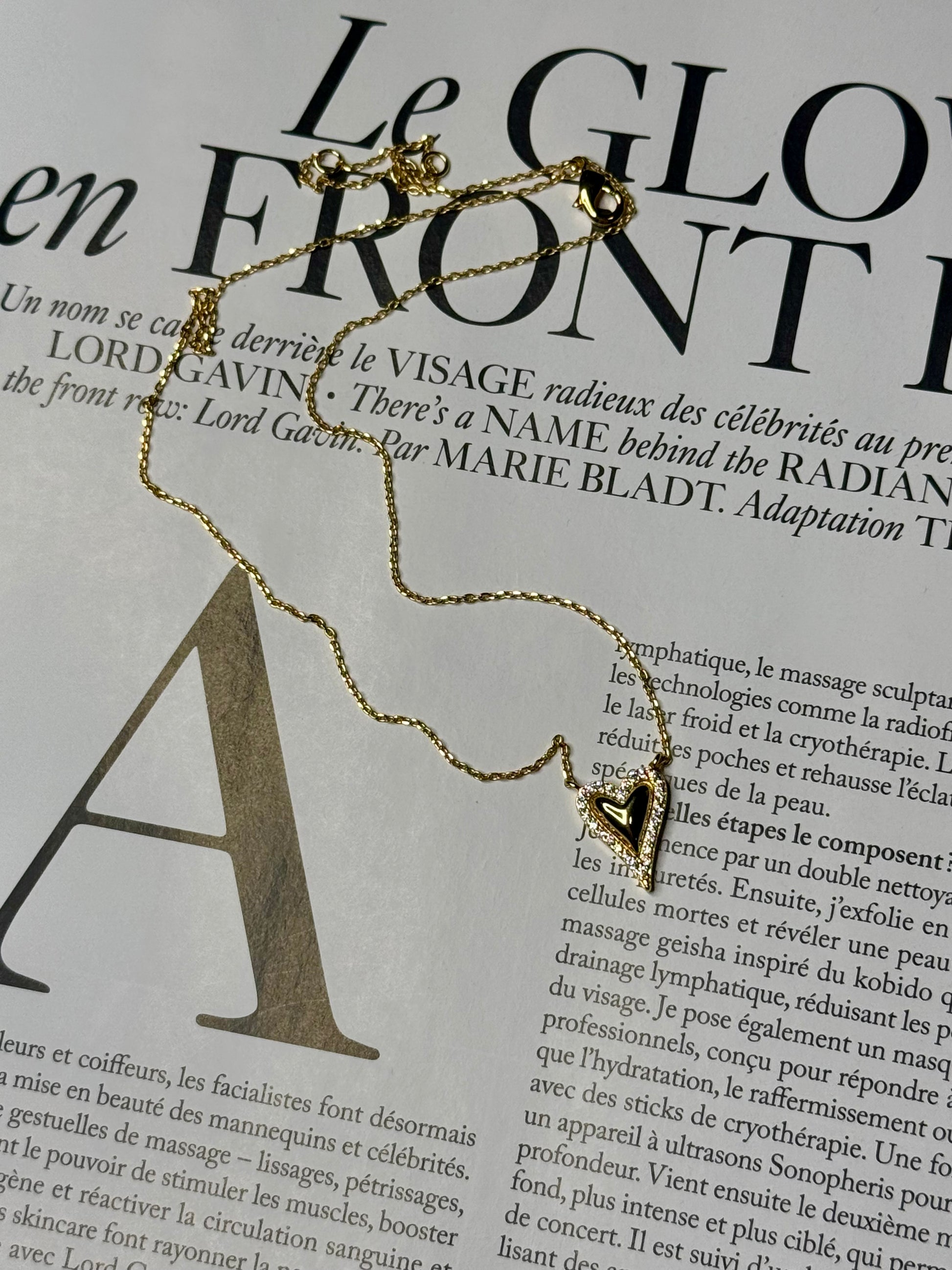 Gold dipped rhinestone platted heart accent dainty pendant necklace, 8" Length, waterproof, hypoallergenic, fade resistant, non-tarnish, waterproof, light weight necklace. Perfect for everyday wear or special occasions. With proper care jewelry will maintain its quality.